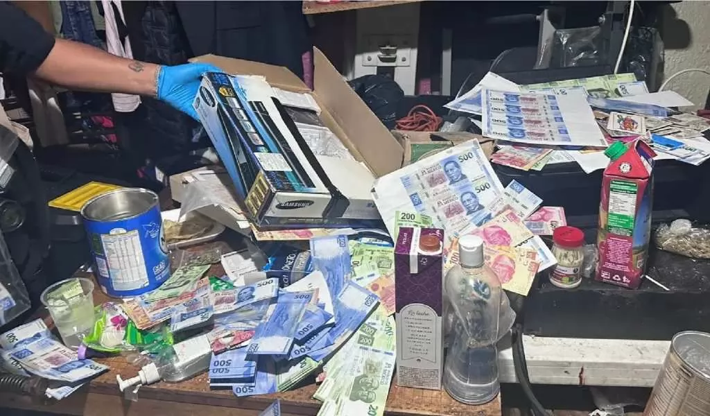 En el lugar se encontraba una impresora, hojas con imágenes de billetes de diversas denominaciones, más de 300 impresiones de billetes de 500, 200, 100 y 50 pesos, así como envoltorios de posible marihuana, un automóvil y un teléfono que era usado para los acuerdos criminales. El inmueble fue asegurado y los policías colocaron sellos en las puertas de acceso del lugar. Durante 2022, el Banco Central captó 350 mil 791 billetes falsos, 92 mil 283 piezas más que en 2021. De acuerdo con el Banco de México (Banxico), el billete más falsificado el año pasado fue el de 50 pesos, pues fueron decomisados un total de 110 mil 228 piezas, es decir, 106 mil 210 más que en 2021, cuando se retuvieron 4 mil 18 unidades.