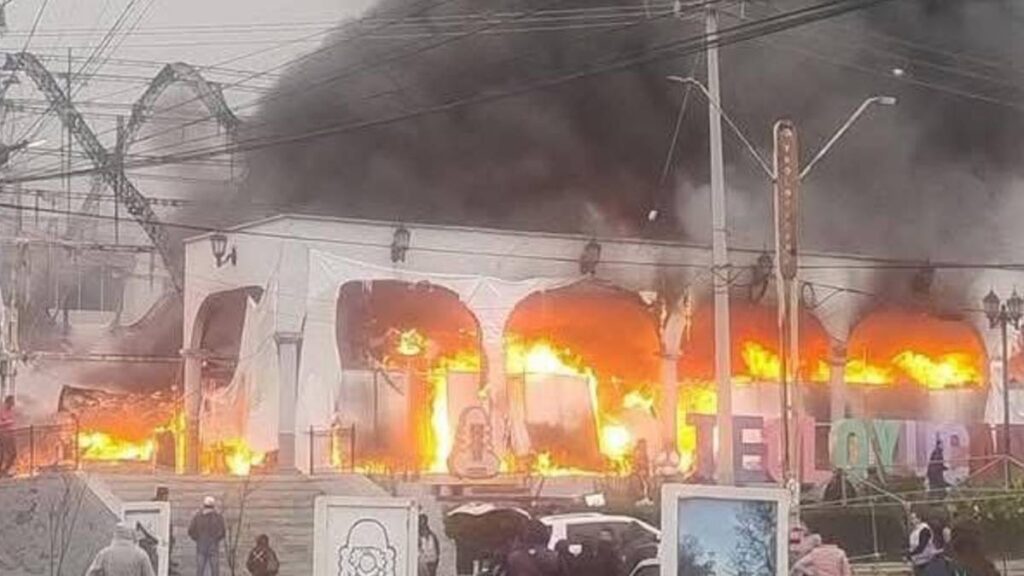 La mañana de este lunes se registró un fuerte incendio en un bazar navideño del municipio de Teoloyucan, Estado de México.