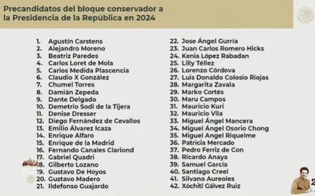 “Vamos a dar a conocer porque son los que han expresado que quieren, han parecido en encuestas, o los han propuesto, para que vean cuántos hay del bloque conservador, dije que 38, pero salieron 42, de...